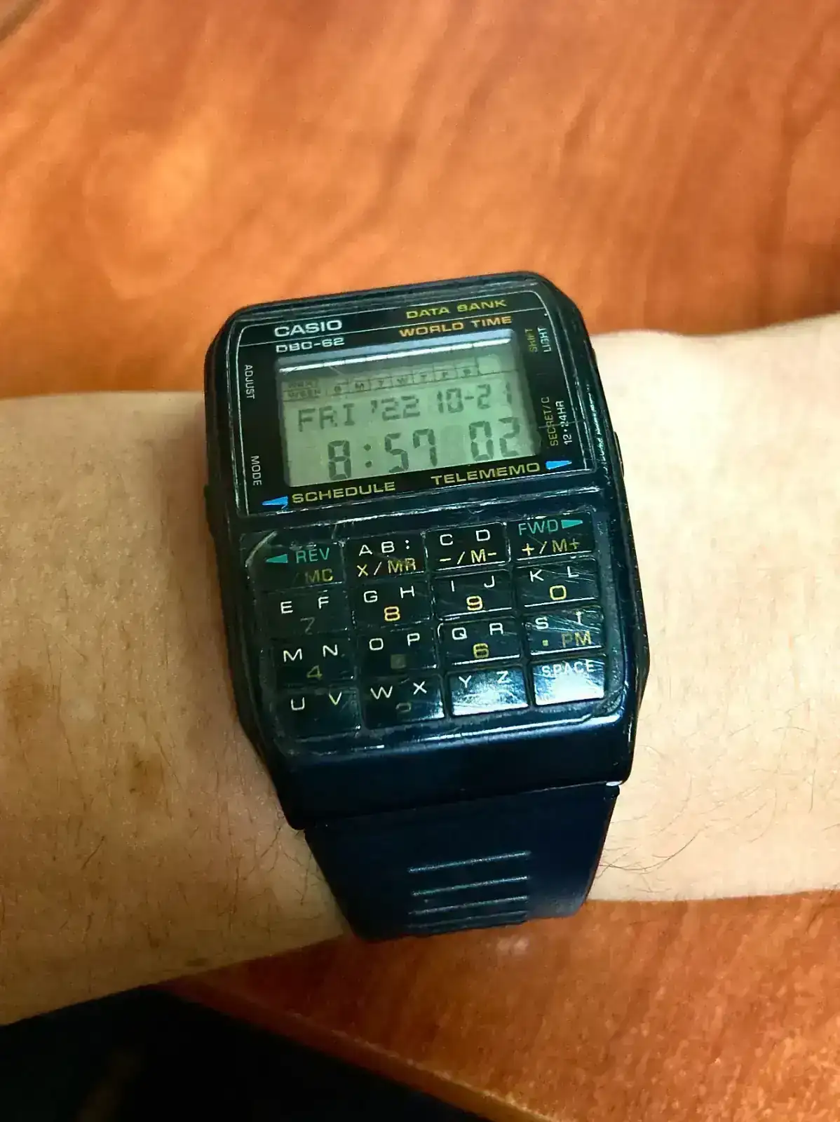 Que relojazo el Databank 👏🏻👏🏻👏🏻👏🏻👏🏻👏🏻Aquí el mío, me lo regalaron cuando tenía 9 o 10 años y aún sigue conmigo vivito y coleando más de 30 años después, claro que con sus heridas de guerra como se puede observar, pero no me desharé de el por el valor sentimental.
