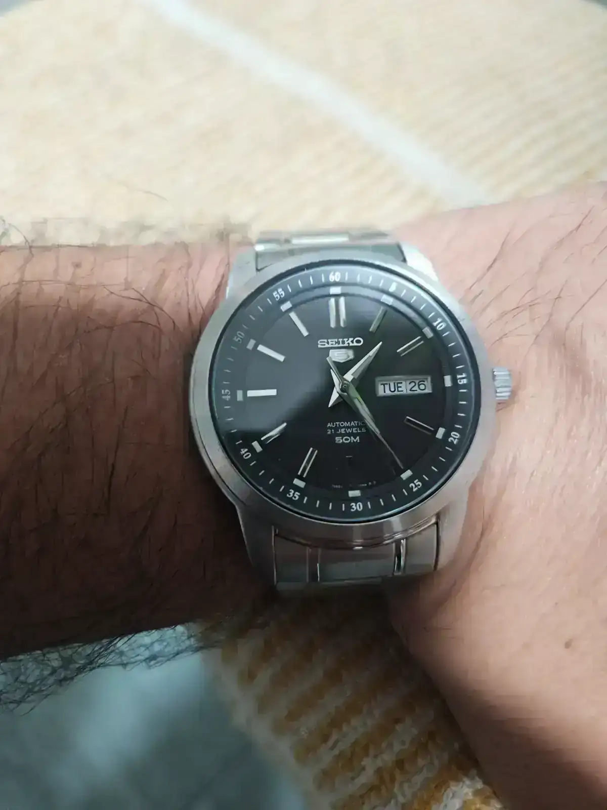 Mi primer reloj automático de los años 90. De momento no ha pasado por ningún servicio técnico y está en +5sg/día. Un dichoso "tractor" de la relojería.