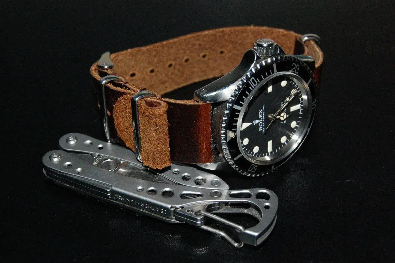 Sin duda, los chapitas y las Chevron son buenos amantes de verano.Yo soy un hereje de manual. No recuerdo cuando ha sido la última vez que este Sub ha disfrutado de su brazalete... Otra NATO Chevron de Crown&Buckle.