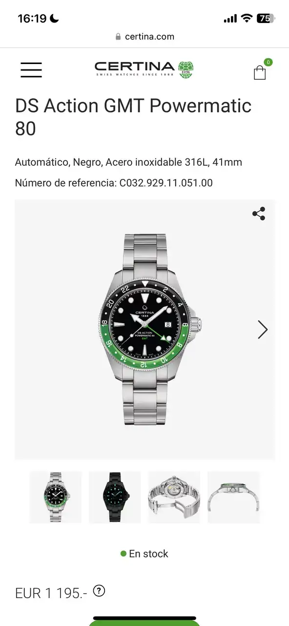Lo mismo. Otro para mi.Yo escogería cualquiera de los Certina y por tamaño el 41mm GMT con bisel en negro y verde.