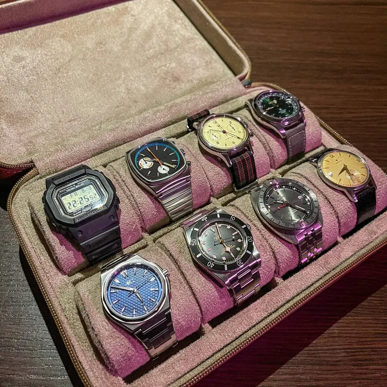 Me alegra coincidir contigo. NoNo estás solo en absoluto, yo hago igual: cajas con almohadillas para los relojes con brazalete y estuches o mantas de relojería para colocar en plano los de correa