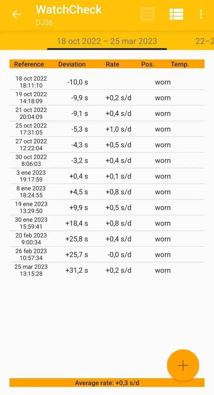 Esto es con un uso variado... hay días en muñeca, o 3 seguidos, y luego otros en winder, o los dejo un día sin uso ni winder, etc... y hay días de despacho, y otros, de campo, o motos, deportes, etc...