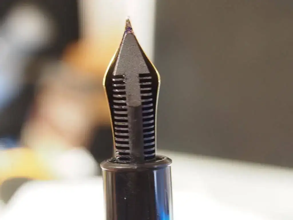El plumín parece ser tricolor (una franja en V rodiada, y todo lo demás dorado), pero pone 14 K; la rosca del émbolo, en efecto de plástico (la comprobación me ha servido de excusa para desmontarlo, limpiar a fondo y lubricar con grasa de silicona). ¿Seguís pensando que es de esos años, 1969-1975, o tal vez puede que el plumín no sea original?