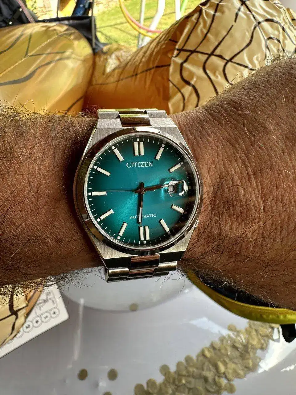 Pues el mío se adelanto de fecha me tenía que llegar mañana , pero ya lo tengo aquí ... Está muy guapo , y si tiene parada de segundero, leí en algún post que no tenía y si tiene parada de segundero , lo único que como no tengas un poco de uñas , sacar la corona en sus posiciones 1 y 2 un poco difícil y poner la hora tampoco es fácil ( Mini corona ) por lo demás pues la verdad ni parece ni da la sensación de ser un reloj de 200 y pico euros , estéticamente no tiene nada que envidiar a modelos de gama de entrada en suizos por el doble y en algunos casos triple de precio. Muy bien terminado , un cepillado a la altura, buenos índices aplicados , buen lumen... Viendo el precio de este citizen a uno se le plantean muchas cosas ... Creo que no será el único color que compre de este modelo ... El mío un turquesa