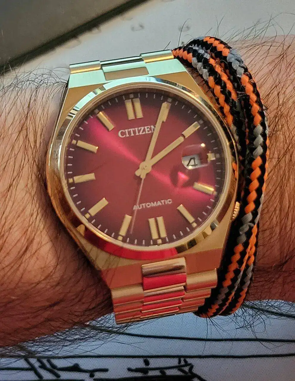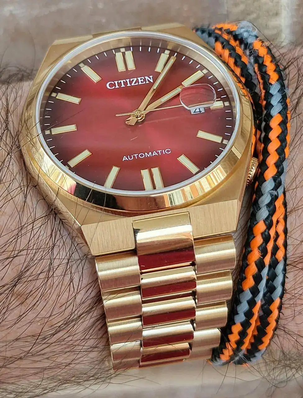 El primer amarillo y con cíclope que tengo y me ha sorprendido para bien su color y reflejos, lo que le he notado que la corona a la manipulación para poner en hora va más dura de todos los que tengo, no sé si alguien más lo a notado o es el mío,este si trae la parada de segundero el reloj está muy chulo y por lo poco que lo he controlado de marcha +4seg