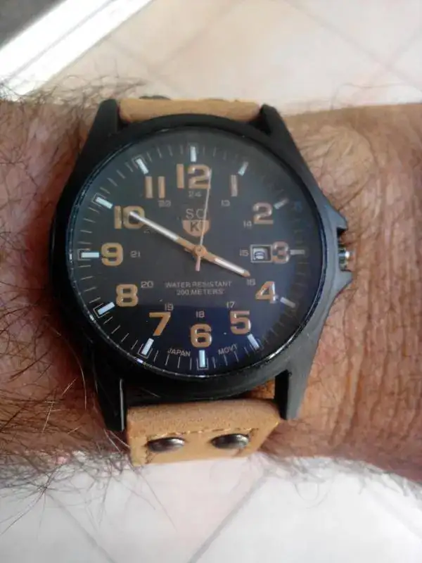 Bueno, me llegó el reloj y si, en las fotos se ve algo pero luego pues es lo que es. El cristal es de plástico pegado sin la típica junta que llevan hasta los chinos de 10 euros, la corona sin juntas ni nada, un agujero y nada mas. La tapa se sostenía milagrosamente, el dial una chapa pasada por una prensa (para dar relieve a los indices que no son aplicados ... eso añadiría piezas) e impresa, el subdial es falso ... es decir el reloj tenia menos piezas que una piedra. La caja estaba compuesta por tapa, caja cristal y luego el movimiento, dial y las 3 agujas, sin juntas ni mas piezas