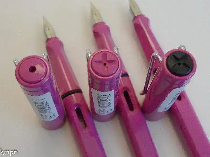 Recientemente Lamy ha sacado una edición especial de su modelo Safari en rosa con el tapón con la cruz negra (la pluma de la derecha de la imagen):