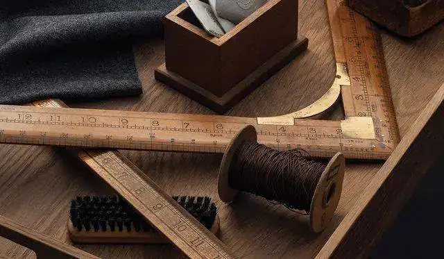 Estoy componiendo anuncios de sastrería, y buscaba utensilios tradicionales como los que pueden verse en la imagen: escuadras, bobinas de madera, etc.