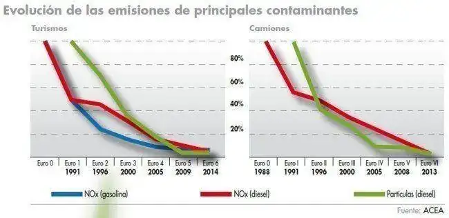 Si nos fijamos, son muy parecidos los limites (NOx) , desde Euro VI, para los ligeros de gasolina y diesel: