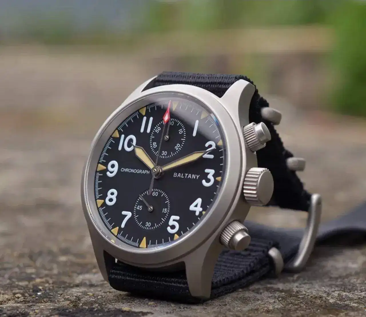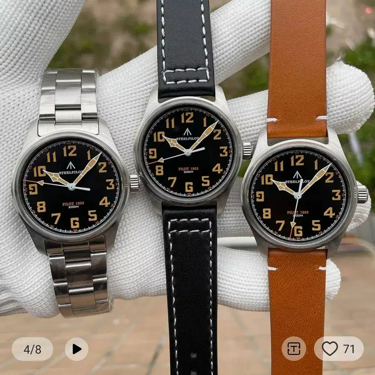 En la fotografía con una correa bund que tenía en la caja y, que creo, le queda muy bien.