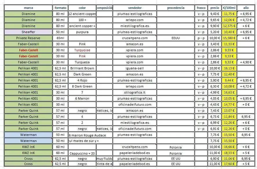 Yo, en su día, tomé apuntes con estilográfica, una humilde quiosquera, durante bastante tiempo y no recuerdo ninguna incidencia; sin embargo hoy solo llevaría de las que tengo otra quiosquera: la Pilot V-Pen, que se puede recargar con maña. Nunca falla, nunca se seca; impresionante por 3,50 €. Por los tinteros no te agobies, hay que escribir mucho, mucho, para gastar uno, pero los de más de 50 ml son los más lógicos. En este listado te he dejado las tintas que salen a menos de 20 € los 100 ml. Algunos precios son tan bajos por ser ofertas puntuales. Espero que te ayude.