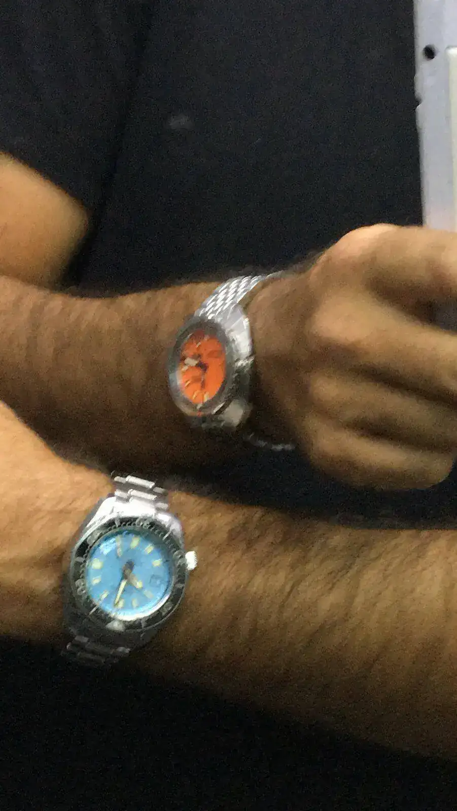 Pero es que tú eres un super crack y claro, todo te queda bien. Menudos relojazos tienes!!!Totalmente normal. Tenía más fotos pero voy borrando. Encontré estas El Mm celeste y Doxa Naranja. Los usaba siempre juntos.