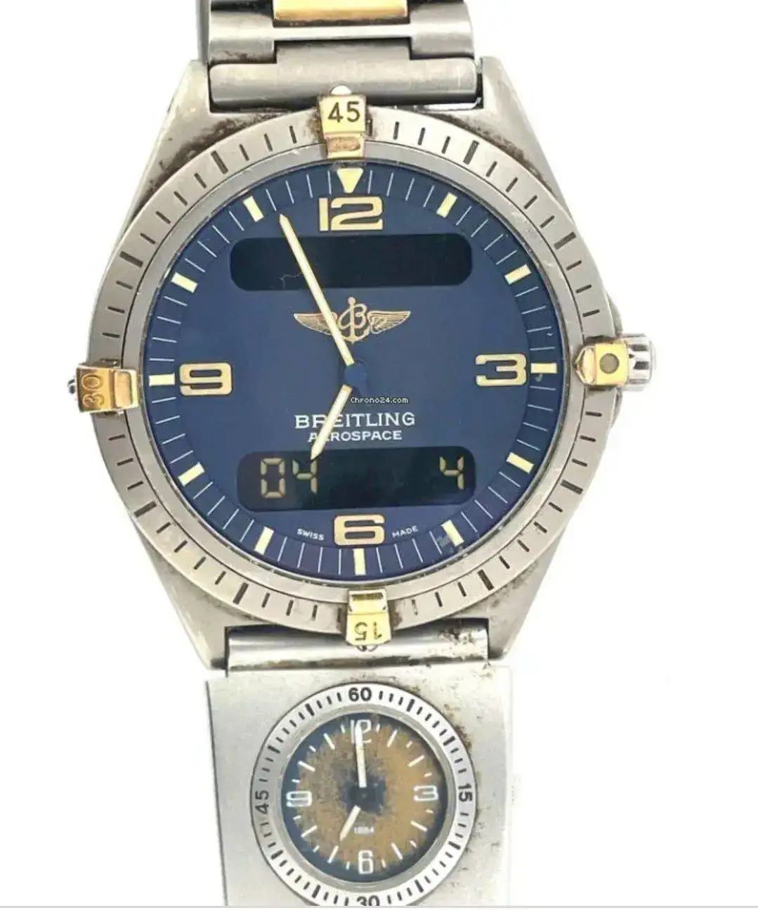 Por cierto, releyendo un hilo del strela kirova, me ha llamado la atención un mensaje enviado por super 8, en el que se veía una foto de un cosmonauta soviético QUE LLEVABA DOS RELOJES!!!Cuando era pequeño estaba este reloj auxiliar de Breitling, que se podía acoplar a algunos modelos