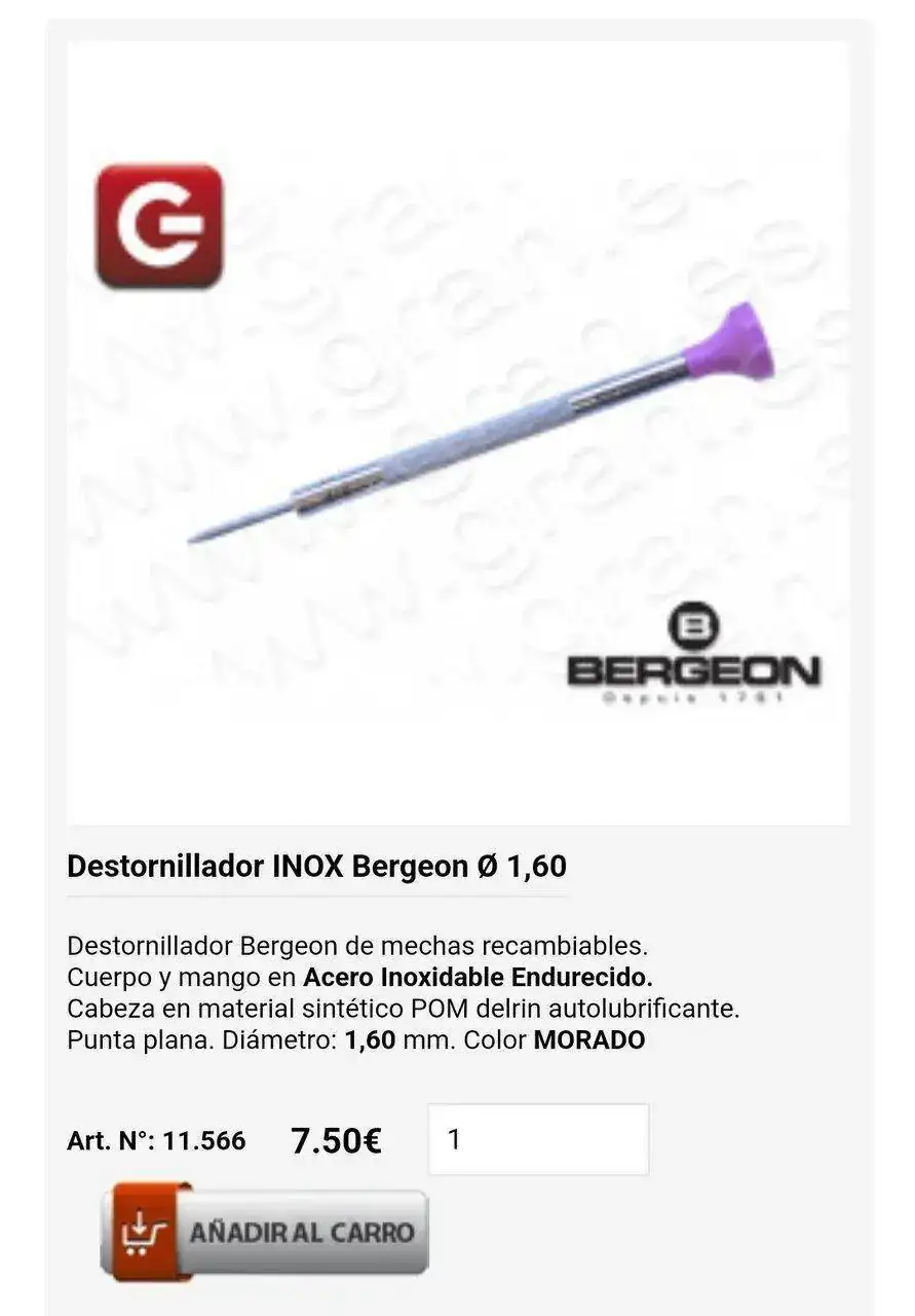 Ahí me fijé en Gran. No tienen los mismos kits, sino los más caros. Y en destornilladores sueltos, de Bergeon tienen los más básicos.