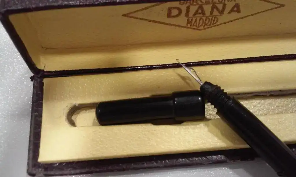 Tengo mis dudas de que ésto sea una "estilográfica" y pido opinión a los sabios del foro. Deciros que la pieza que aparece en medio de la estructura es movil.