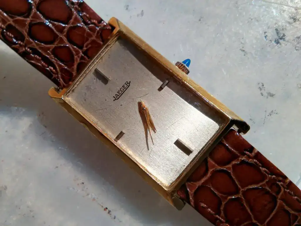 La ausencia del "Hecho en Suiza" del dial ya es un detalle poco esperanzador respecto al pedigrí de la pieza pero quizás sea un auténtico Edmond Jaeger si es que este comercializó sus propios relojes bajo la marca Jaeger a secas.