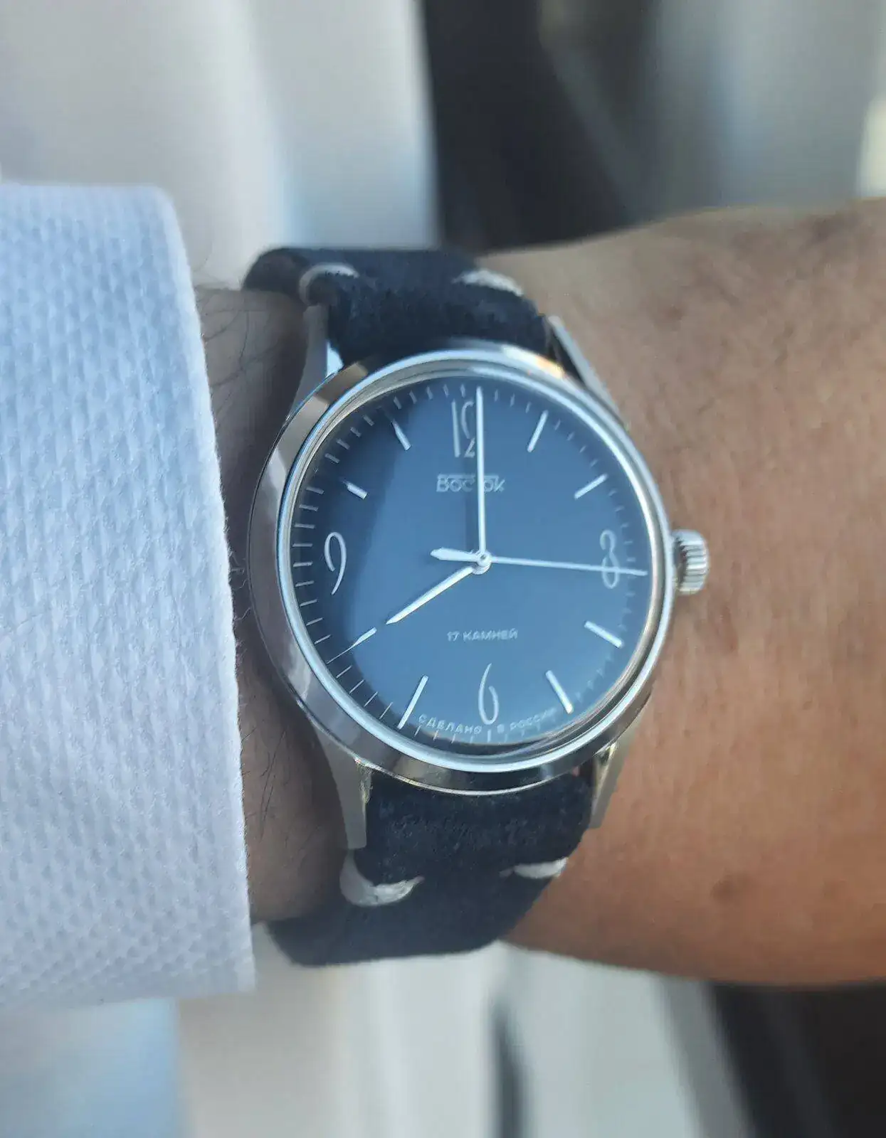 Me encanta la combinación. Creo que a ese reloj una correa sin brillo le hace resaltar aún más. Y le da un aire más desenfadado. No como para ir a la huerta, pero lo suficiente como para beber una litrona a morro.Definitivamente, al menos en el Classica y el primer Raketa, milanesa, perlón no muy gruesa o cuero.