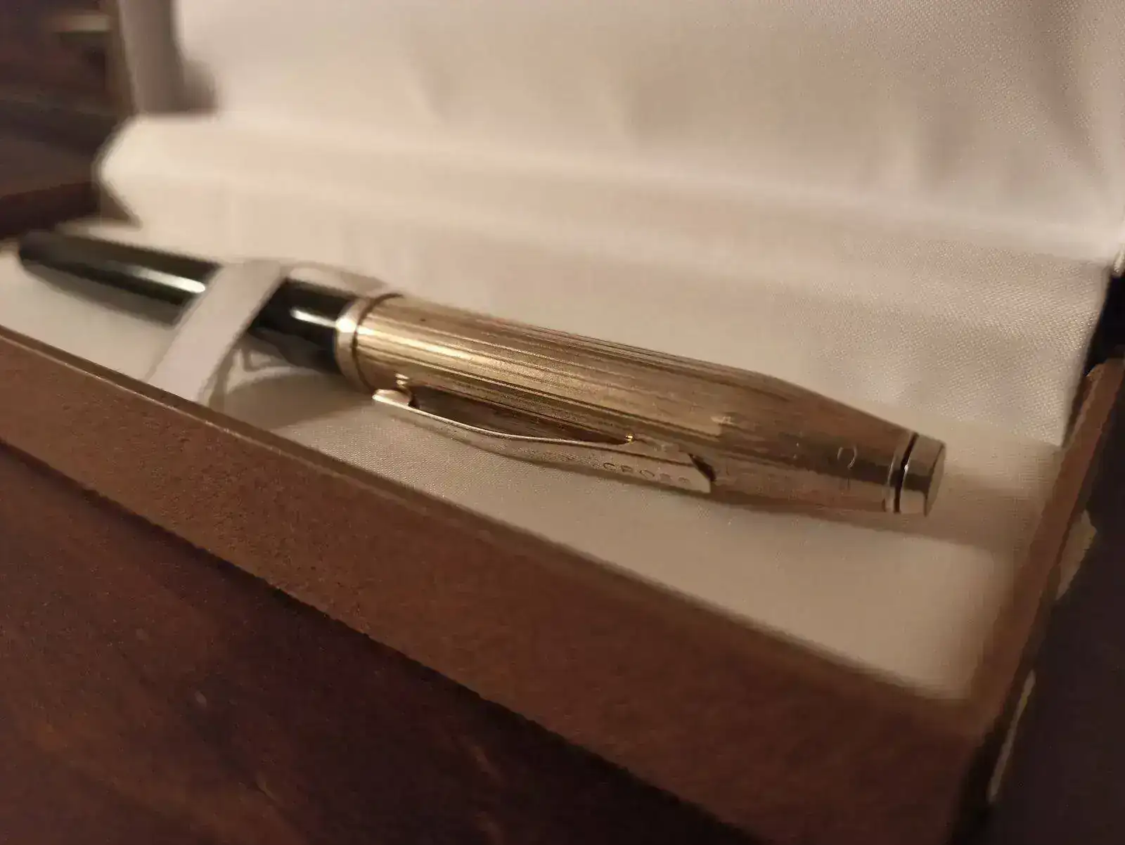 Hace años (bastante tiempo) compré en Amazon un rollerball marca CROSS anunciado como: "capuchón de plata maciza esterlina 925 y cuerpo de laca negra". El estuche, de hecho, dice: