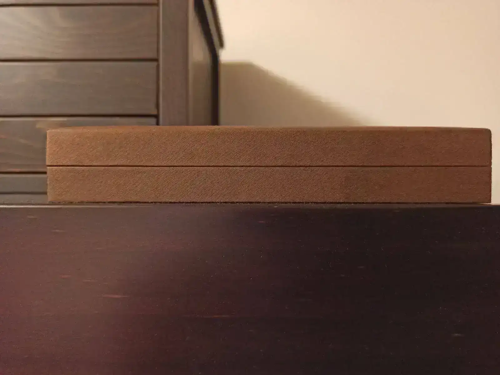 También parte de la etiqueta en el estuche vino arrancada, donde debería decir dónde está hecha la pieza.