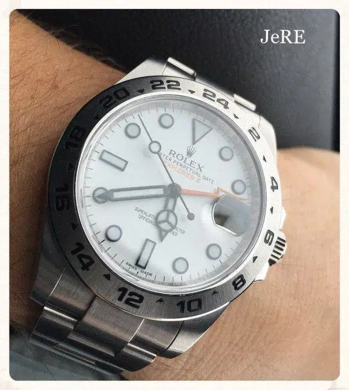 En cuanto al Explorer II, me gusta el que lleva la esfera blanca, aunque con su tamaño de 42 mm. y el color blanco, pienso que me puede parecer un poco grande. A favor, el armis pulido que resulta mucho más sufrido. También me gustaría saber si las esferas blanca y negra son intercambiables.