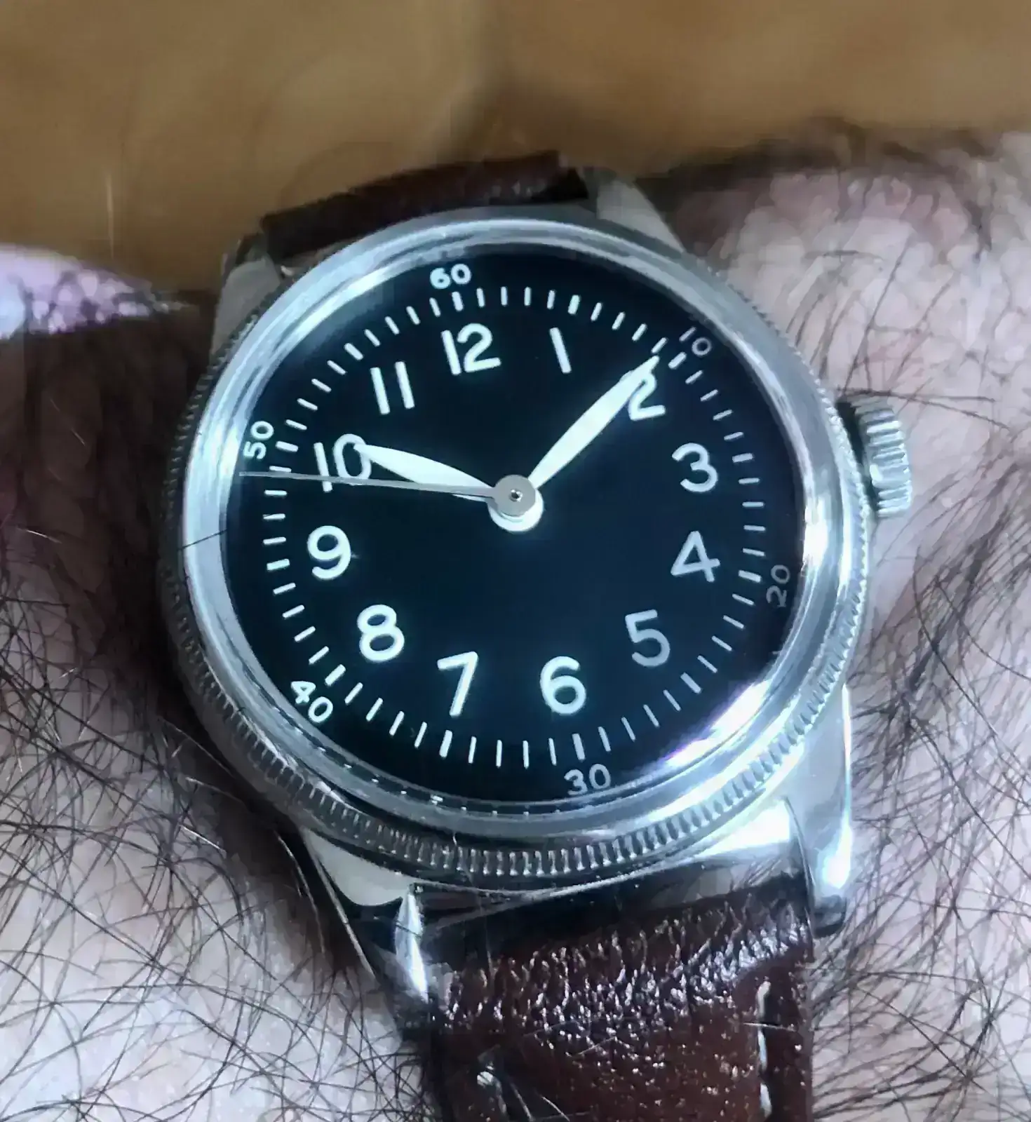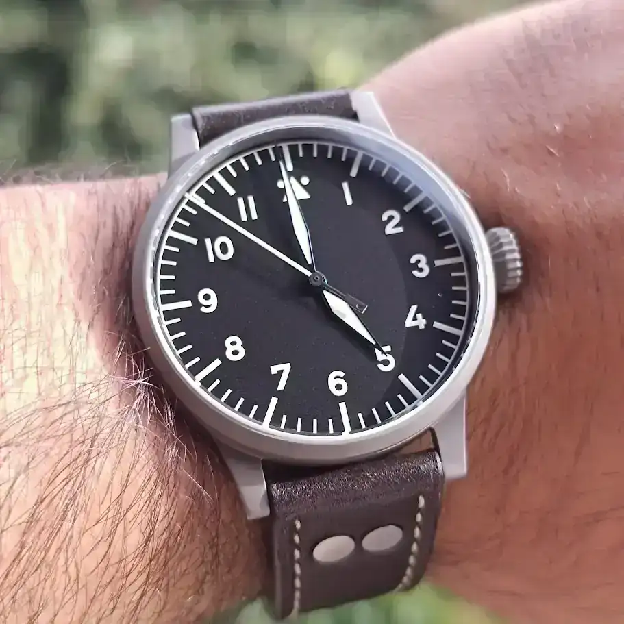 Así que tenía un flieger, pero no lo usaba. Hace poco maduró una idea en mi cabeza: ¿quién me va a examinar para saber si mi reloj es más o menos fiel al original? ¿Vendrá Hermann Göring a comprobar si el reloj que llevo puesto es el que debe ser? (Por muchos motivos, espero sinceramente que no). ¿Por qué no puedo llevar un flieger a diario y disfrutarlo al máximo? Este es mi último aprendizaje en la senda de la iluminación relojera... Así que volví a valorar mis opciones.