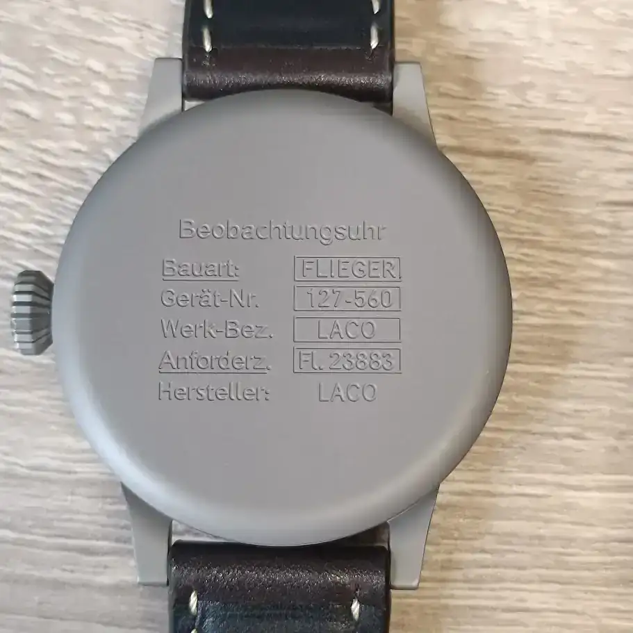 Cabe destacar dos aspectos. El primero es que los flieger originales se llevaban por encima de la chaqueta de aviador y tenían diámetros superiores a los 50 mm (si buscas algo fidedigno, debes apostar por el caballo más grande). En línea con lo anterior, Laco recomienda en su propio contenido que el flieger se lleve algo más grande de lo habitual. Ambos aspectos me empujaron a optar por la versión de 42 mm en lugar de la inferior de 37 mm, que me pareció insuficiente.
