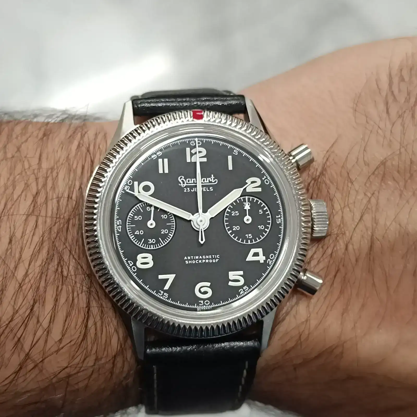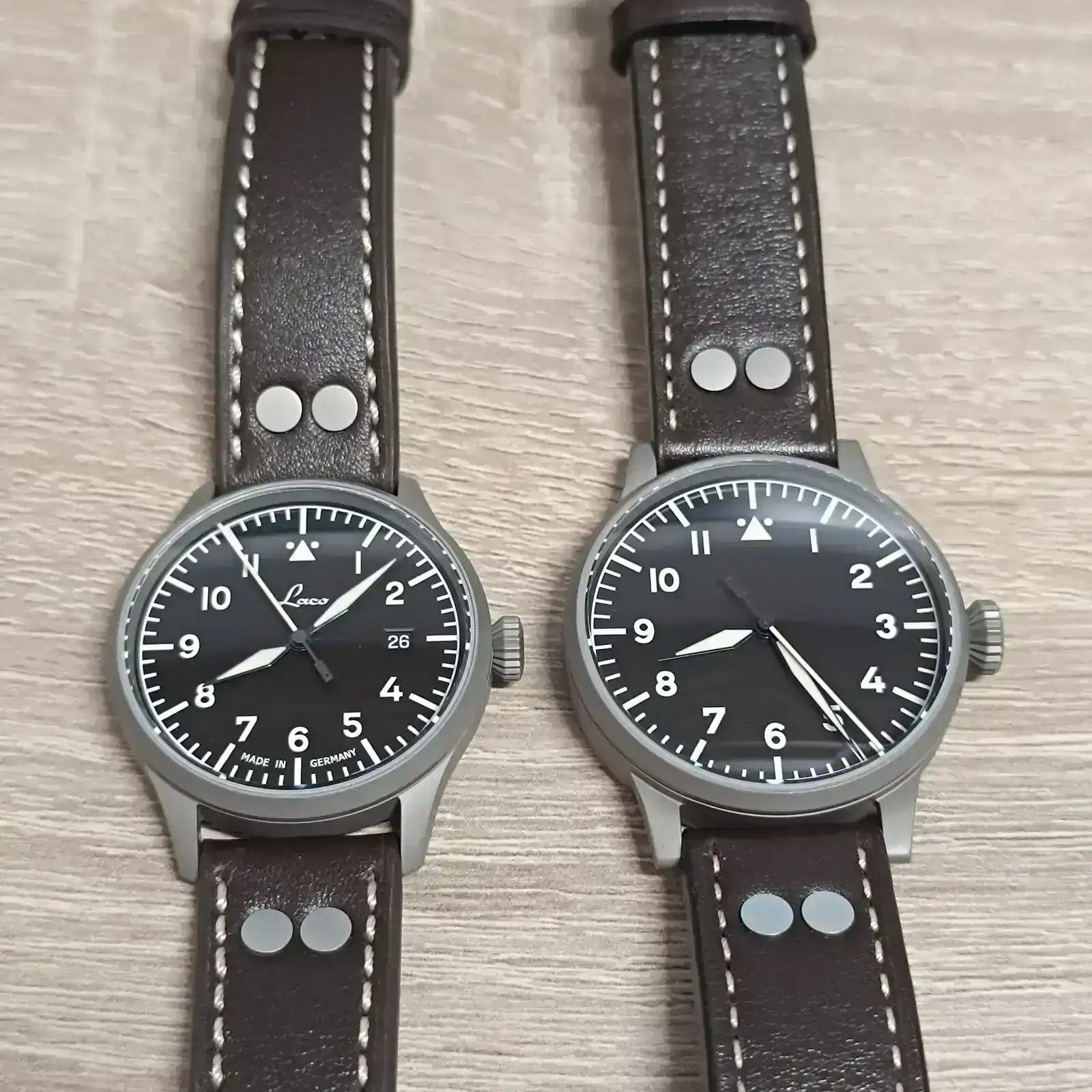 He comprado recientemente el Flieger Pro y estoy viviendo una auténtica luna de miel con él. Uno al lado del otro parecen hermanos bien avenidos, pero en la muñeca uno es un cómodo Mercedes-Benz con el que te irías de viaje, mientras que el otro es un Panzer con el que sólo me imaginaría montar una Blitzkrieg... Lamentablemente, es muy probable que el Laco Münster sea el próximo en abandonar el barco.