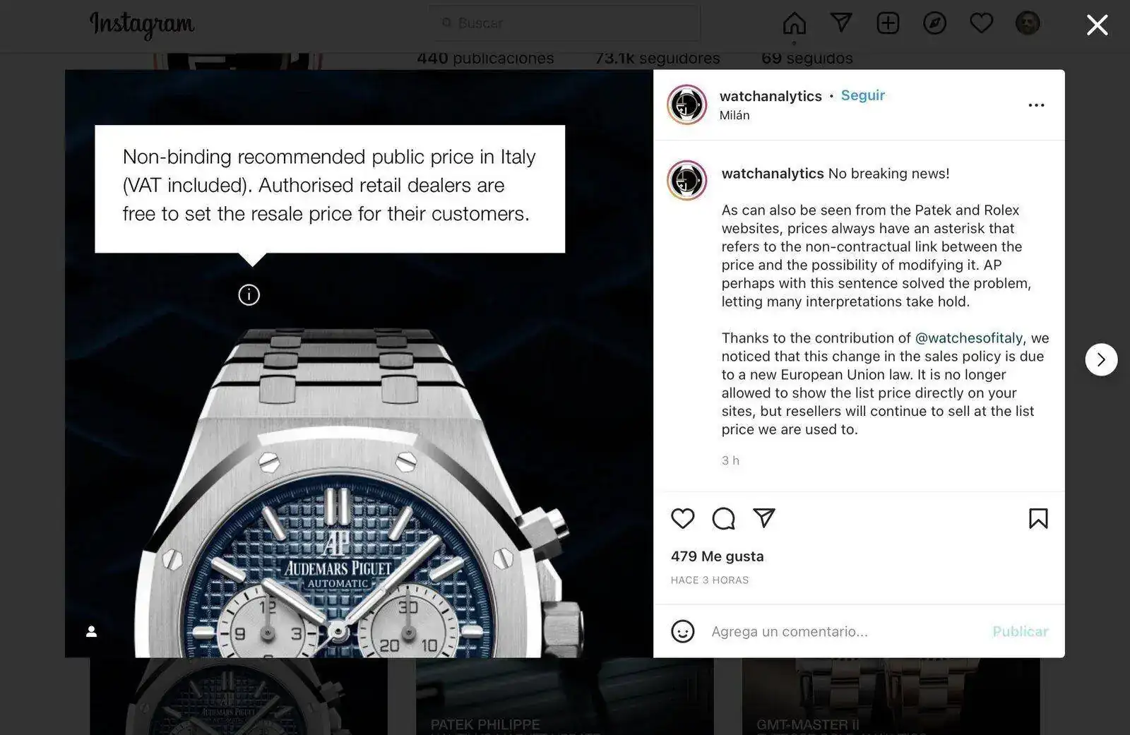Qué raro, ¿que no está permitido mostrar el precio en sus webs oficiales por normativa?Parece que alguien le ha dado un toque de atención porque han actualizado el post cambiando el texto, justificandolo con Rolex y Patek y la nueva normativa europea