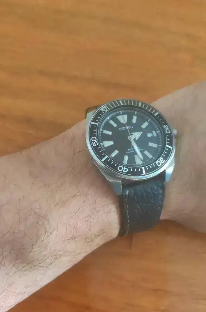 Increíble casualidad anoche le puse por primera vez cuero a mi seiko Samurái. Básicamente porque estoy en aislamiento y en casa se me hacía un poco pesado y ya fastidioso por la situación decidí usar la correa de otro seiko y disminuir a la mitad el peso.