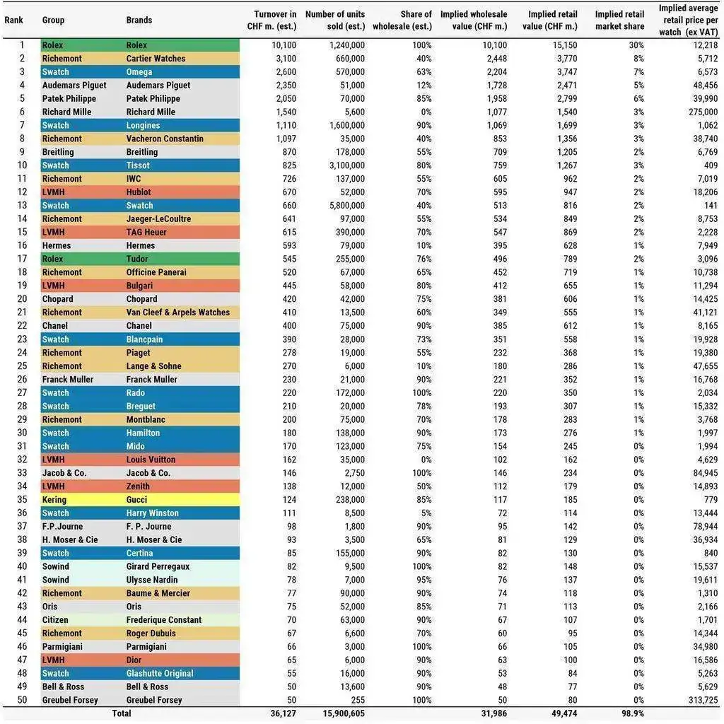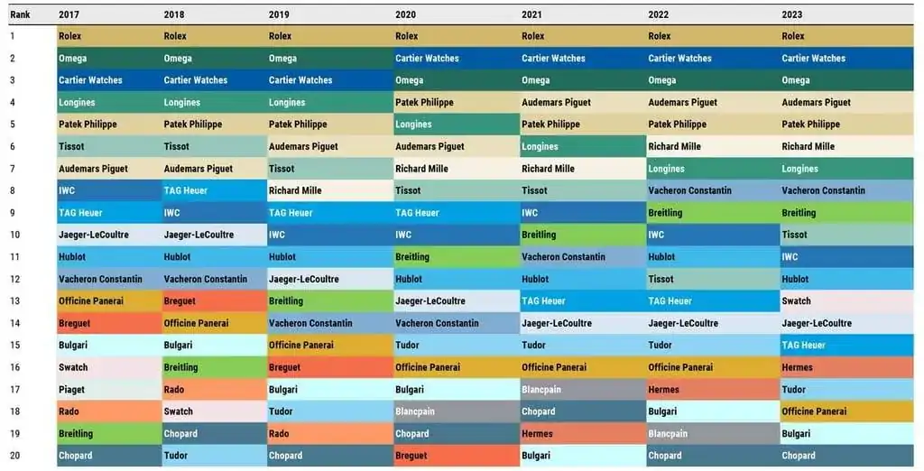 Me explico, vemos que Panerai ha retrocedido varias posiciones…, pero únicamente con respecto a la competencia.