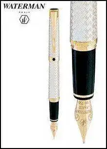 Es una Waterman Létalon plata. Tambien existe el mismo modelo en otras terminaciones, creo recordar que en laca. A mi personalmente este modelo siempre me ha gustado mucho. La plata en concreto creo que tiene algun tipo de proteccion pues mantiene el color sin dar los sintomas de ennegrecimiento tipico y habitual de este metal.