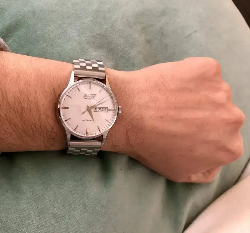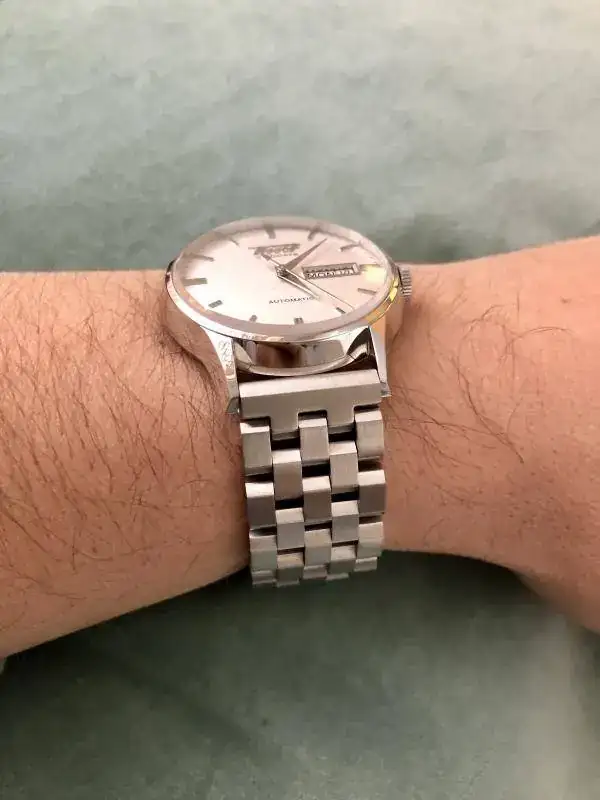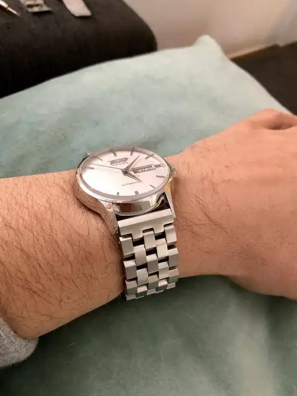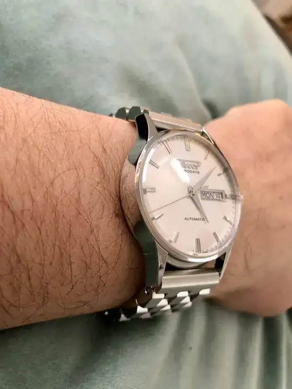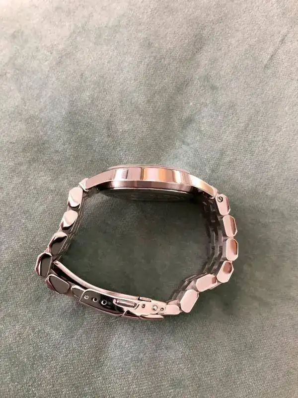 Creo que le sienta bien el diseño del brazalete, pero quizás sea un poco grueso para el diseño de la caja. Una milanesa fina le iría de perlas.