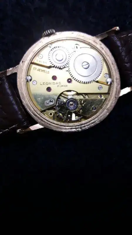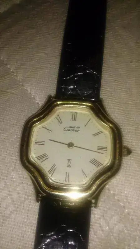 Ahora bien, lo que necesito es saber que valor podría tener dicho reloj, ya que no encuentro nada al respecto en la red y si el cambio me sale rentable o no. A continuación dejo unas fotos de mi Must de Cartier de señora y de su Leonidas, ambos de cuerda: