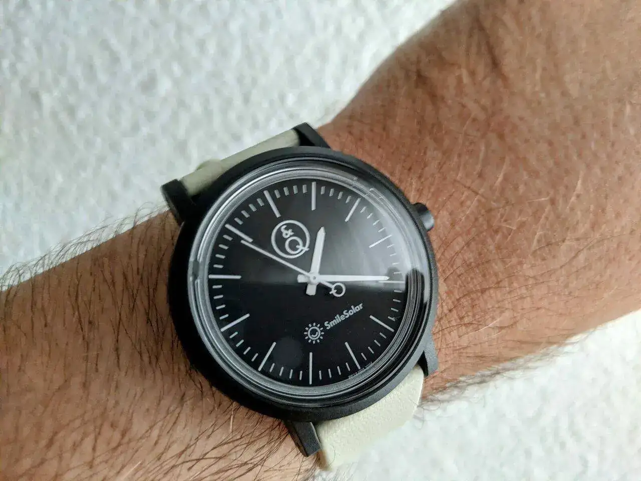 Un cuarzo de 40mm solar Q&Q (pertenece a Citizen), caja y cristal de plástico y 100m. Es como los Swatch, que no se le puede cambiar la pila, pero tiene una esperanza de vida de 10 años, nada menos. Con un calibre Miyota que funciona muy bien, qué mas se puede pedir por 29€ que me costó en Amazon. Además está hecho con plásticos reciclados recogidos del mar y un tanto % de las ventas se destina a fines sociales. Por cierto, los hay de otros colores, que no dudaré en comprar (un colorcito más veraniego). Y tan feliz.Yo si que llevo mi PO 8900 a remojar, para que tener un diver de 600m si luego te da miedo mojarlo? Que no son gremlins, están pa