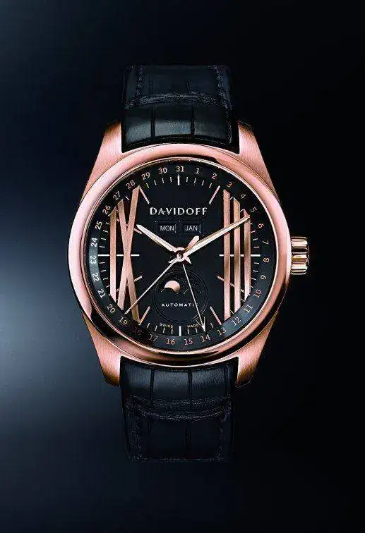 A mi es una complicación que me encanta, pero que desgraciadamente se me escapaba de presupuesto. Sin embargo, hace un mes en la liquidación de relojes de Davidoff, he conseguido el Velocity Moonphase automatico en PVD oro rojo a un precio magnifico. Lleva un movimiento Dubois Depraz DD9000, con calendario completo, correa de Alligator, zafiro antireflejo, cierre desplegable, fondo visto atornillado etc... Tiene unos acabados muy buenos. Creo recordar que estos relojes fueron fabricados por Maurice Lacroix. Va a ser mi regalo de Reyes y lo tengo envuelto para regalo y no hice fotos antes de envolverlo, pero os pongo unas sacadas de la red.