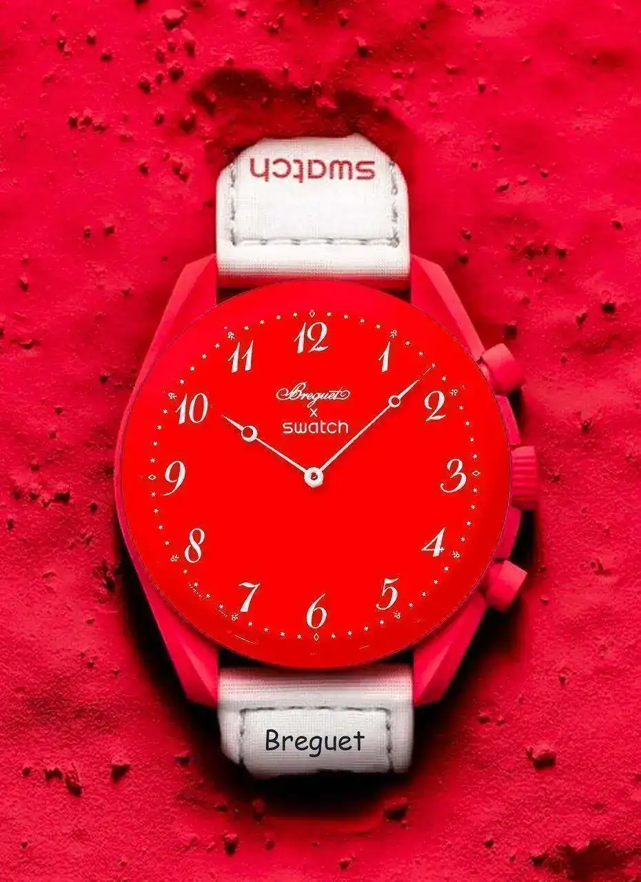 Me imagino que son composiciones que se debían hacer en su momento como hipótesis de lo que seguiría al Moonswatch. El rojo es muy chapuza porque han empleado la caja del Monswatch.