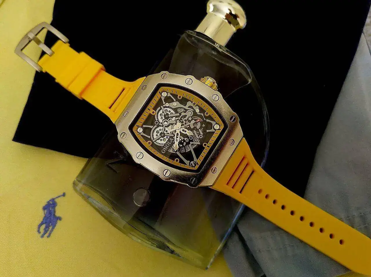 Verano total, emho, me gusta el toque que le da, lo convierte en un reloj llamativo y cantarín. Desde luego no pasa desapercibido.Buenas noches compañer@s; pensé que para el verano podría quedar bien, pero ahora que lo miro veo demasiado amarillo, serán cosas mias???.