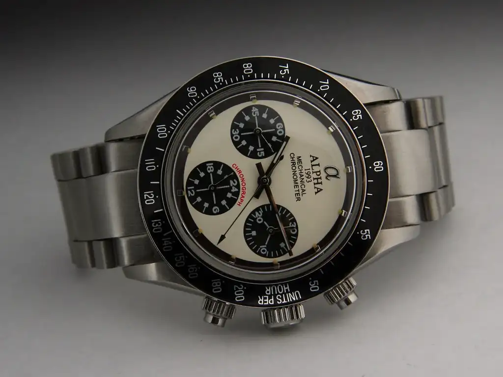 Compré también el Alpha Speedmaster y el crono tenía un defecto. Pero he de decir que lo devolví y me devolvieron el dinero, incluyendo el envío. Lo compré en la web de Alpha.