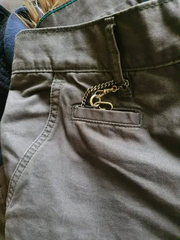 El caso es que me ha dado por los relojes de bolsillo, suelo llevar chinos que me he fijado que tienen el bolsillo para guardar el reloj y con la tontería voy más de una vez dando un poco la nota