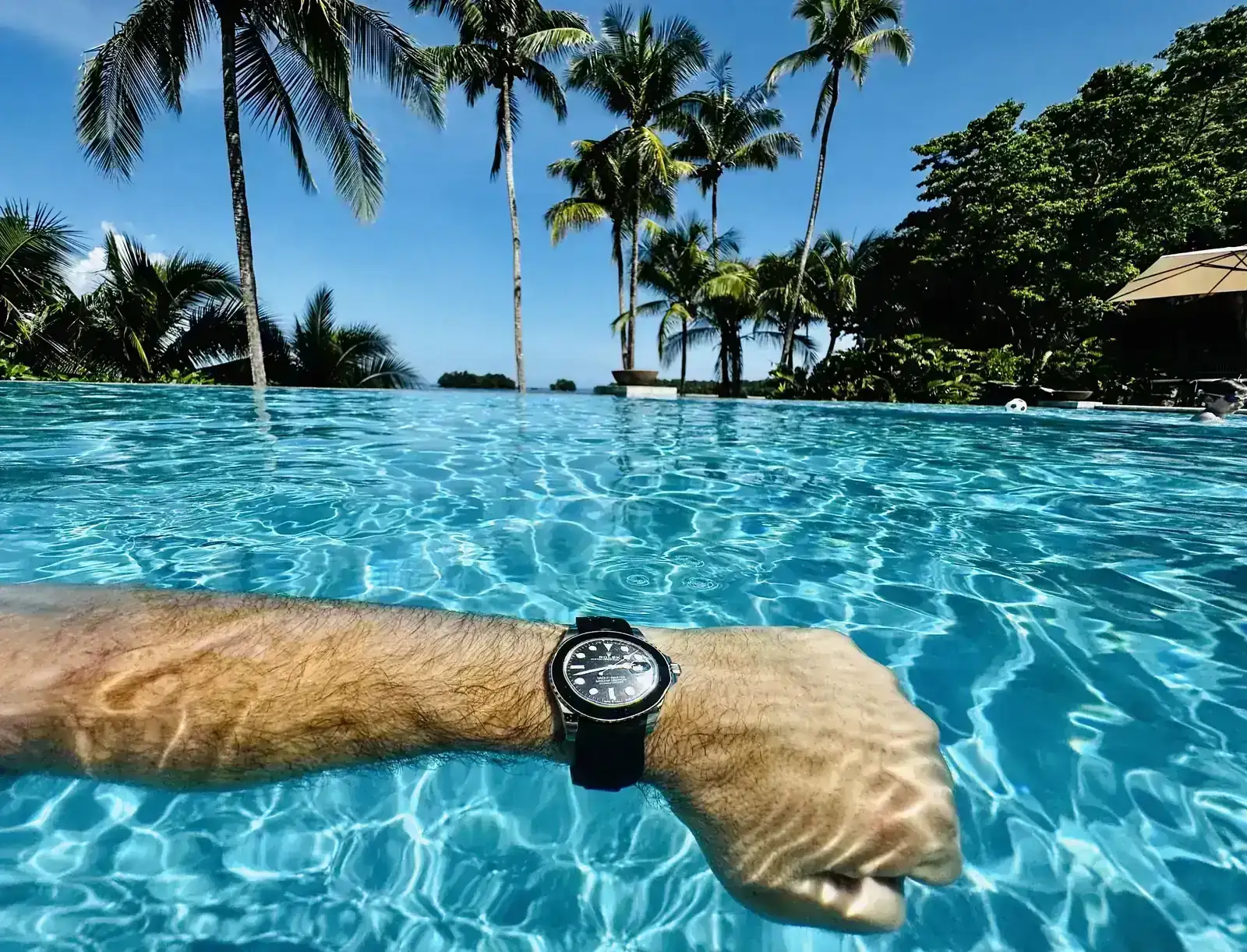 Si al menos pone 100 metros, va para adentro, sin problema hasta la fecha. Tengo un Seiko Monster desde 2007, con el que básicamente estuve años haciendo pesca submarina, y ahí sigue como si nada. Aparte de ese, un baby Monster, 100metros sin corona roscada, también ha ido a menudo al agua, y un Luminox y un Hydroconquest a veces han estado en piscina. No siempre los llevo si voy a ir al agua, pero si me da por ahi, prefiero meterme con ellos que dejarlos tirados en la bolsa, la verdad.