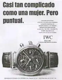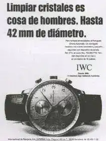 Sacado de un enlace de Marca sobre publicidad histórica y emblemática del mundo relojeril, me he topado con un par de anuncios de IWC que chocarían bastante (mucho) con la sociedad de hoy en día. Curioso cómo cambian los tiempos