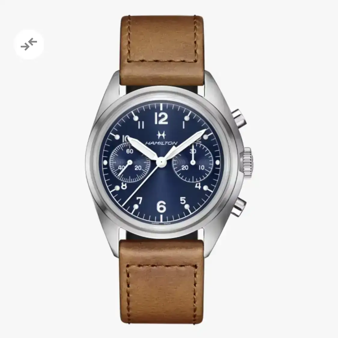 Este Hamilton H76522131 se encontraba hasta hace nada entre uno de mis futuribles... Iba buscando un reloj de piloto. Me gustó el dial asimétrico con el chrono y la estética vintage. La cosa es que hace unas semanas, fijándome bien me di cuenta que la caja es ligeramente más amplia y redondeada por el lado derecho del reloj para abrazar la corona.. Desde entonces lo veo amorfo. ¿Qué os parece?