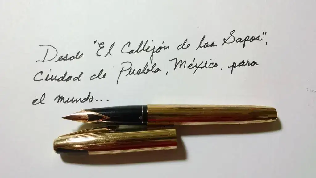Andaba yo en la ciudad de Puebla, México, (hermosísima ciudad colonial) hace dos semanas y, en un famoso bazar llamado "El Callejón de los Sapos" di con esta pequeña joyita y, aunque le vi el plumín un tanto chueco, decidí comprarla de todos modos (600 pesos mexicanos, aproximadamente, 35 euros) con la esperanza de lograr enderezarlo, dado que tengo cierta experiencia enderezando plumines. Sin embargo... una vez que la probé le vi varias cosas.