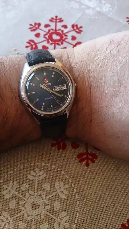 Bueno, el caso es que di con este de las fotos. Buscaba un RADO, que por lo que tengo entendido (como neófito en el tema relojeríl) es una excelente marca que no se dispara de precio en el mercado de segunda mano, que es el único que tengo a mi alcance.