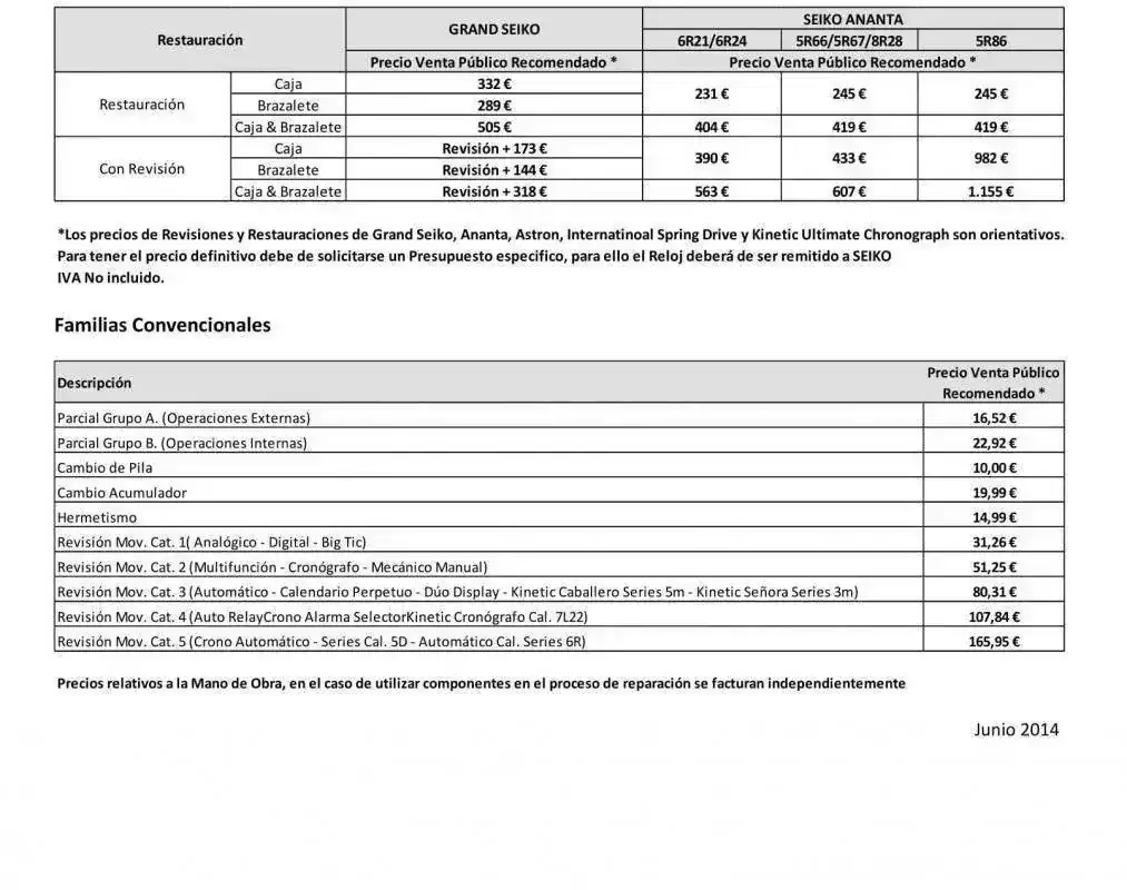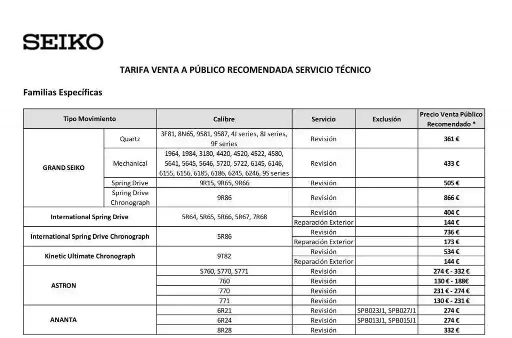 El precio en concreto de una revisión para un Spring Drive es de 520 euros con un pulido incluido.