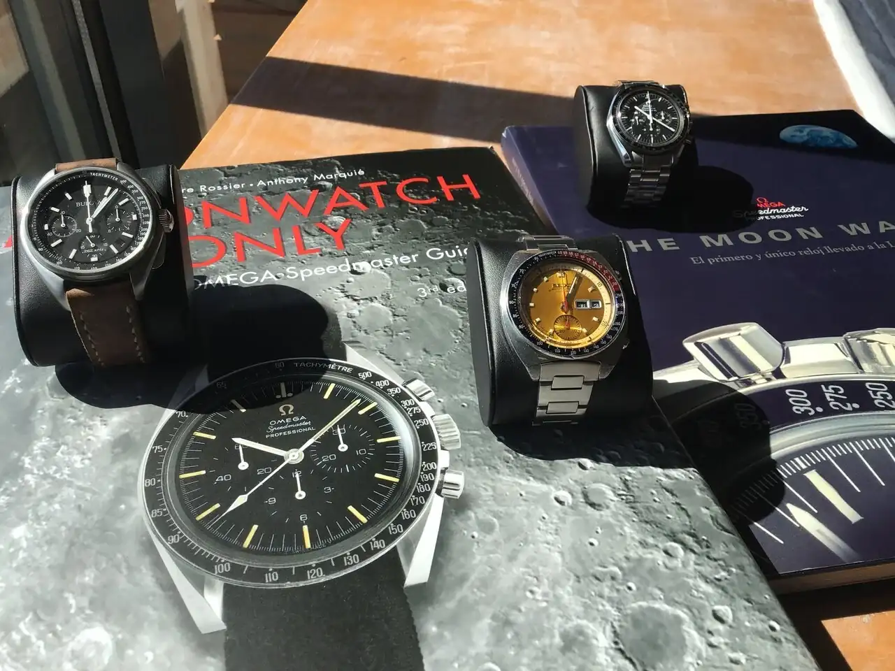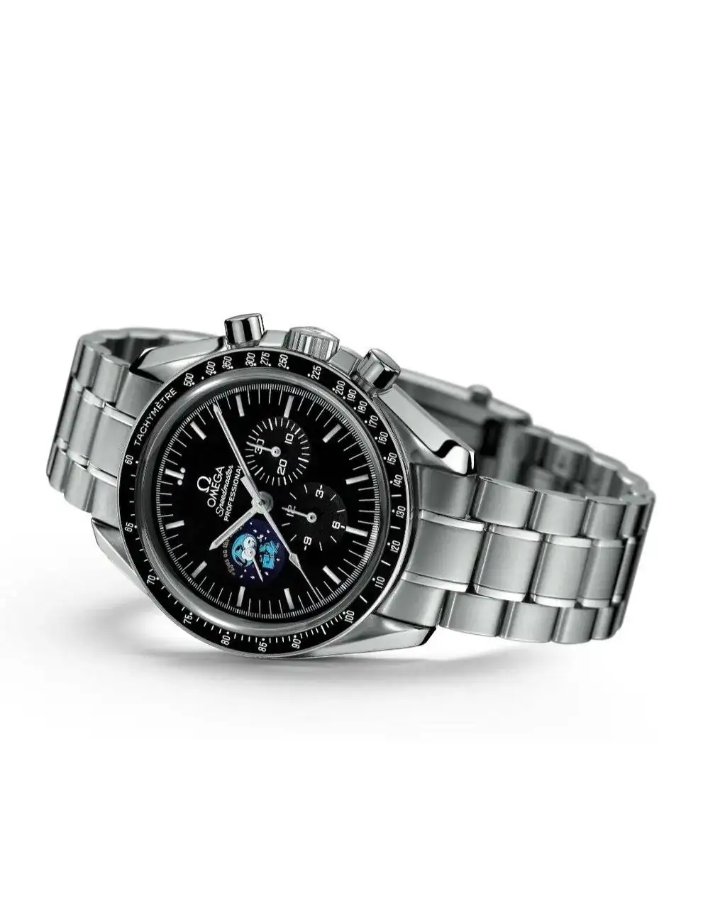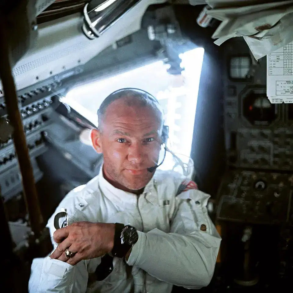 El Speedmaster fue además el primer reloj que se llevó oficialmente a la Luna durante la misión Apolo 11, en el año 1969. Buzz Aldrin, el segundo hombre en pisar la Luna, lo llevaba en su muñeca, sellando el destino del reloj y su relación con el espacio. A partir de entonces fue conocido y rebautizado como el "Moonwatch", o el reloj de la Luna.