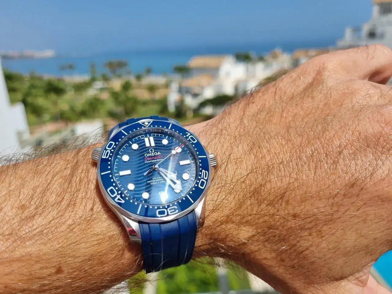 Es un Seamaster cronógrafo azul de titanio de la siguiente generación. Menos mal que no lo metí en el mar, porque un buen día, lavándome las manos con el reloj puesto, veo que al rato aparece el cristal empañado. Lo abrí con una pelota y lo dejé abierto entre sol y sombra para secarlo un par de días antes de cerrarlo. No le afectó a la marcha ni tiene signos de óxido, que en ese calibre serían evidentes a través del cristal. El bisel va a trompicones y gira un poco en sentido contrario. Está pidiendo revisión, pero no está el horno pa bollos.Problemas de estanquedidad,y eso? Yo todos los veranos lo remojo y ningún problema es cierto q son 3 veranos remojándolos