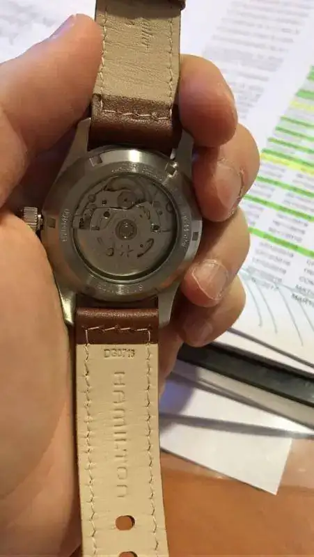 Bueas. Hace una semana compré un Hamilton automático modelo H70455553. La cuestión es que en la página de la marca pone que ese modelo lleva calibre H-10, pero en la web de la tienda pone otro y para más sopresa he visto fotos de los dos calibres pero ninguno son exactamente iguales al que tengo. Ahí va la foto del mío.
