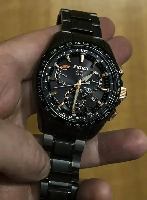 es un reloj que me encanta le llámo "La Perla negra" me fascina el contraste del Titanio negro y el Oro rosa disculpar que no sea Casio pero estamos entre amigos `y por un dia que no ponga Casio no-Pasa-naa son de esos relojes que ni en General pegan por ser Cuarzos Tecnologicos de mas de 2.000 euros ya te miran rarito