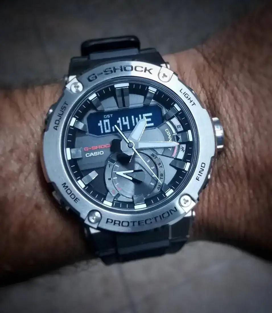 Hoy voy con un G muy cómodo. Me encantan los brazaletes mixtos de Casio!